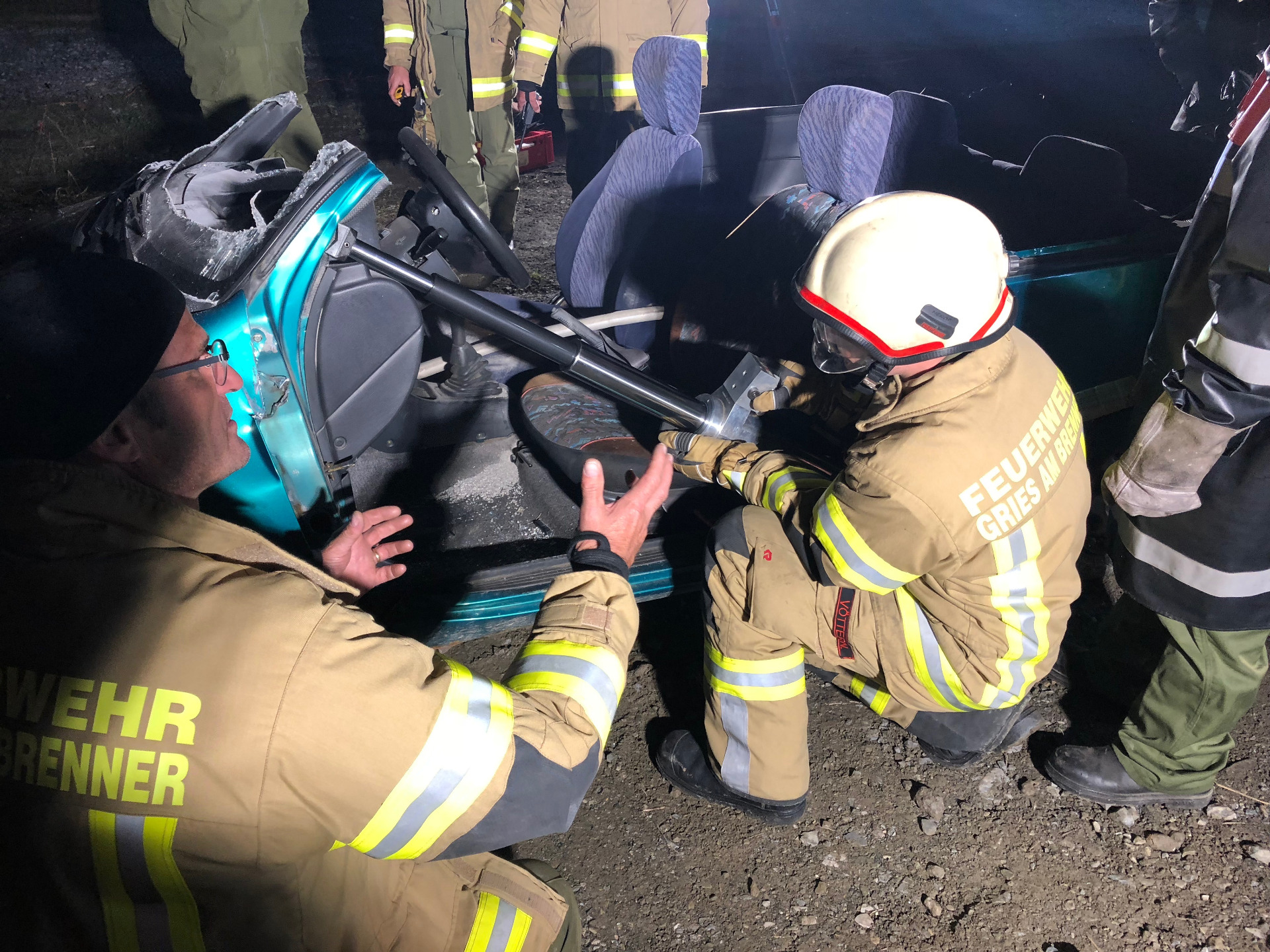 Die erste Herbstprobe 2018 fand am Dienstag den 02.10.2018 in Lueg statt. OLM Leiter Dietmar organisiert diese fordernde Übung. Beim Eintreffen am Unfallort wurden zwei Szenarien vorgefunden. Zum einen ein PKW Unfall mit einer eingeklemmten Person und zum anderen eine vermisste Person. Nachdem die Unfallstelle abgesichert war, wurde sofort mit der Ausleuchtung begonnen um ein vernünftiges Arbeiten zu ermöglichen. Die Mannschaft vom Tankfahrzeug baute im Anschluss unter schwerem Atemschutz den doppelten Brandschutz auf. Währenddessen bereitete die Mannschaft vom LFB-A alles für den technischen Einsatz vor. Eine weitere Mannschaft begann unterdessen mit der Suche der vermissten Person, diese konnte auch rasch gefunden und in Sicherheit gebracht werden. Als das verunfallte Fahrzeug gesichert war, wurde mittels Bergeschere die Beifahrertüre entfernt und die eingeklemmte Person gerettet. Anschließend wurde das Fahrzeug geborgen. Nun wurden noch verschiedene Techniken im Umgang mit dem hydraulischen Rettungsgerät sowie das richtige Entfernen von Scheiben geübt. Bei dieser Übung konnte viel Wissen unter sehr realistischen Bedingungen vermittelt werden. Die Feuerwehr Gries am Brenner bedankt sich bei Dietmar Leiter für die Durchführung dieser interessanten Übung.