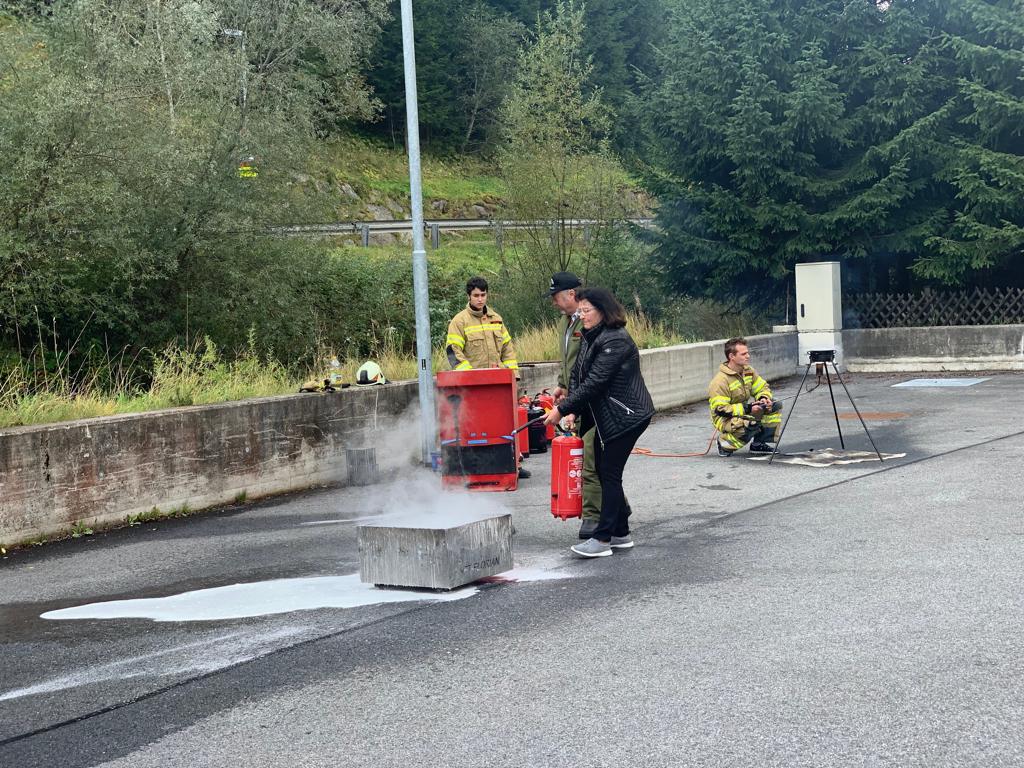 beim Gerätehaus in Vinaders. Bei dieser sehr gut besuchten Übung konnte die Bevölkerung die Handhabung und den richtigen Umgang mit Feuerlöschern
